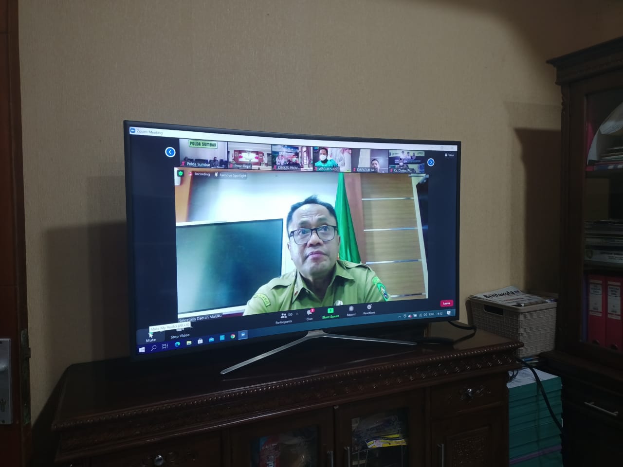 AMBON, – Demokrasi Maluku Sekretaris Daerah Maluku Kasrul Selang, Selasa (2/2/2021) Rapat Rutin Monitoring dan Evaluasi (Monev) Pelaksaan Vaksinasi Covid-19, yang digelar Kementerian Kesehatan (Kemenkes) RI secara virtual dari Kantor Gubernur Maluku.