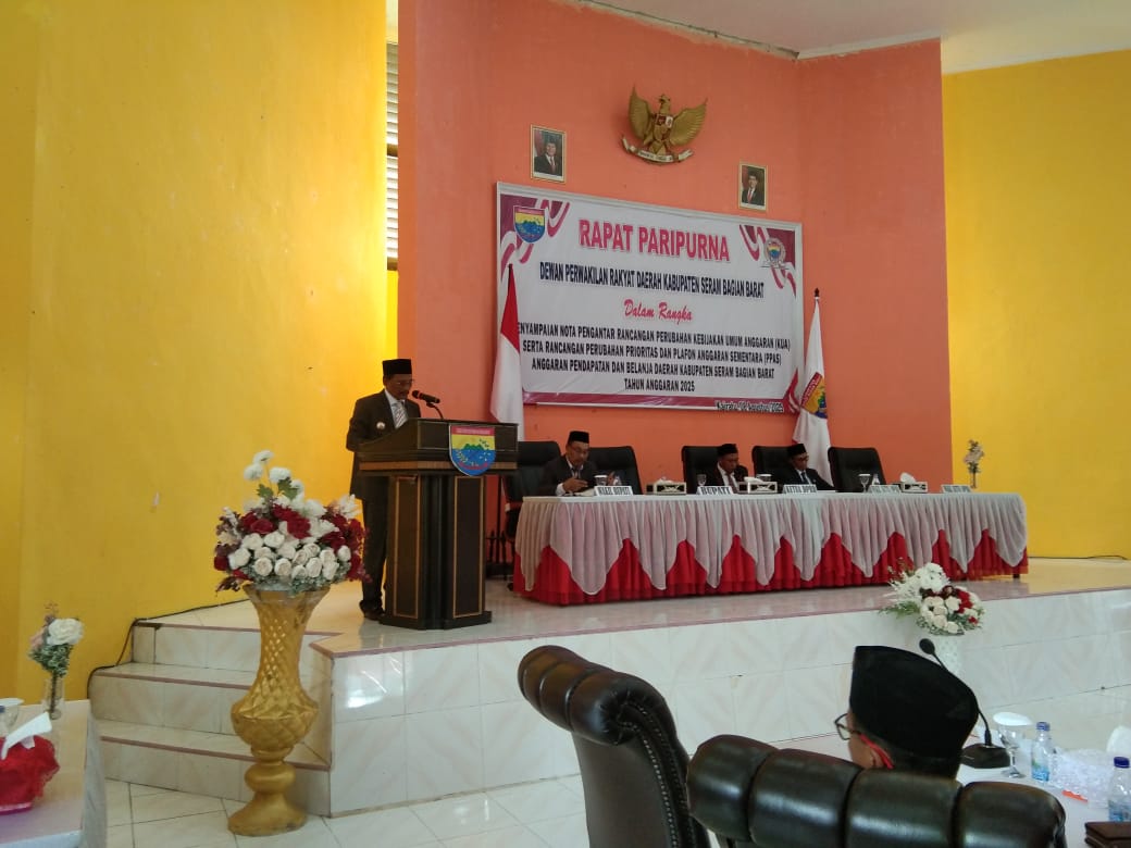 Rapat Paripuna Rapat Paripurna DPRD Penyampaian Nota Pengantar Rancangan Perubahan Kebijakan Umum Anggaran ( KUA) serta Perubahan Prioritas dan Plafon Anggaran Sementara ( PPAS) Kabupaten Seram Bagian Barat Tahun Anggaran 2025, itu dihadiri oleh Bupati SBB, Ir Asri Arman MT, Ketua DPRD SBB, Andarias H Kolly SH, Wakil Bupati SBB, Selfinus Kainama S.Pd, Sekretaris Daerah SBB,