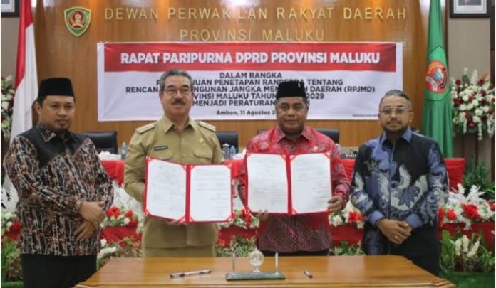 Ambon, Demokrasi Maluku ; DPRD Provinsi Maluku Senin (11/08/2025) menetapkan Rencana Pembangunan Jangka Menengah Daerah (RPJMD) 2025–2029 menjadi Peraturan Daerah (Perda). Penetapan dilakukan pada rapat paripurna yang berlangsung di ruang rapat paripurna DPRD Maluku Provinsi Maluku , Karang Panjang Ambon.