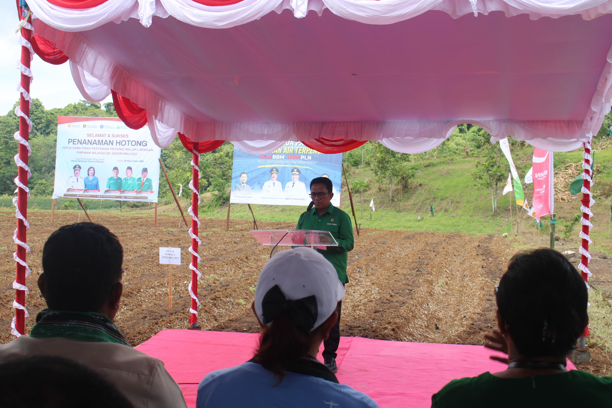 “Penanaman hotong hari ini merupakan program Dinas Pertanian Provinsi Maluku bekerjasama dengan Pengurus Wilayah Gerakan Pemuda (GP) ANSOR Provinsi Maluku sebagai bentuk dukungan melalui gerakan pemuda ANSOR Patriot pangan terhadap penguatan ketahanan pangan di Maluku .