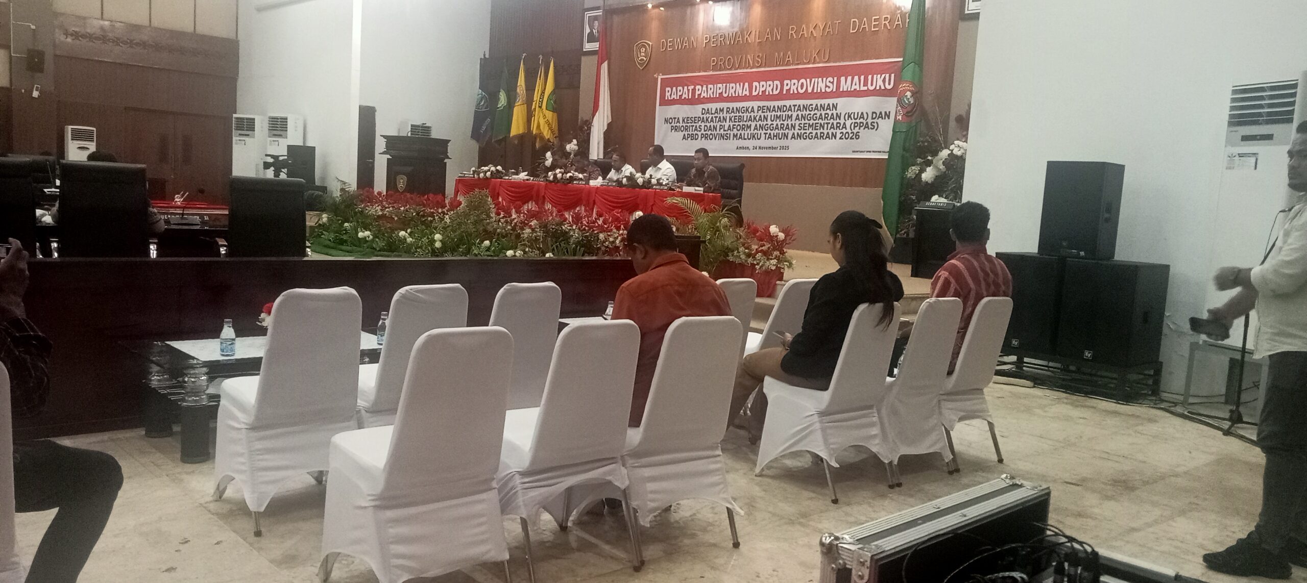 Ambon, Demokrasi Maluku :Dewan Perwakilan Rakyat (DPRD) Provinsi Maluku akhirnya menyetujui pinjaman Pemerintah Provinsi Maluku ke PT.Sarana Multi Infrastruktur ( SMI) sebesar 1,5 T. Hal ini terungkap dalam pembacaan dokumen keputusan DPRD Provinsi Maluku yang dibacakan oleh Kepala Bagian Umum dan Keuangan DPRD Provinsi Maluku Asmain Elly mewakili Plt Sekwan pada paripurna Penandatanganan Nota Kesepakatan Kebijakan Umum Anggaran (KUA) dan Prioritas Platform Anggaran Sementara (PPAS) APBD Provinsi Maluku Tahun Anggaran 2026, yang berlangsung di ruang paripurna DPRD Provinsi Maluku pada Senin (24/11/2025) malam.