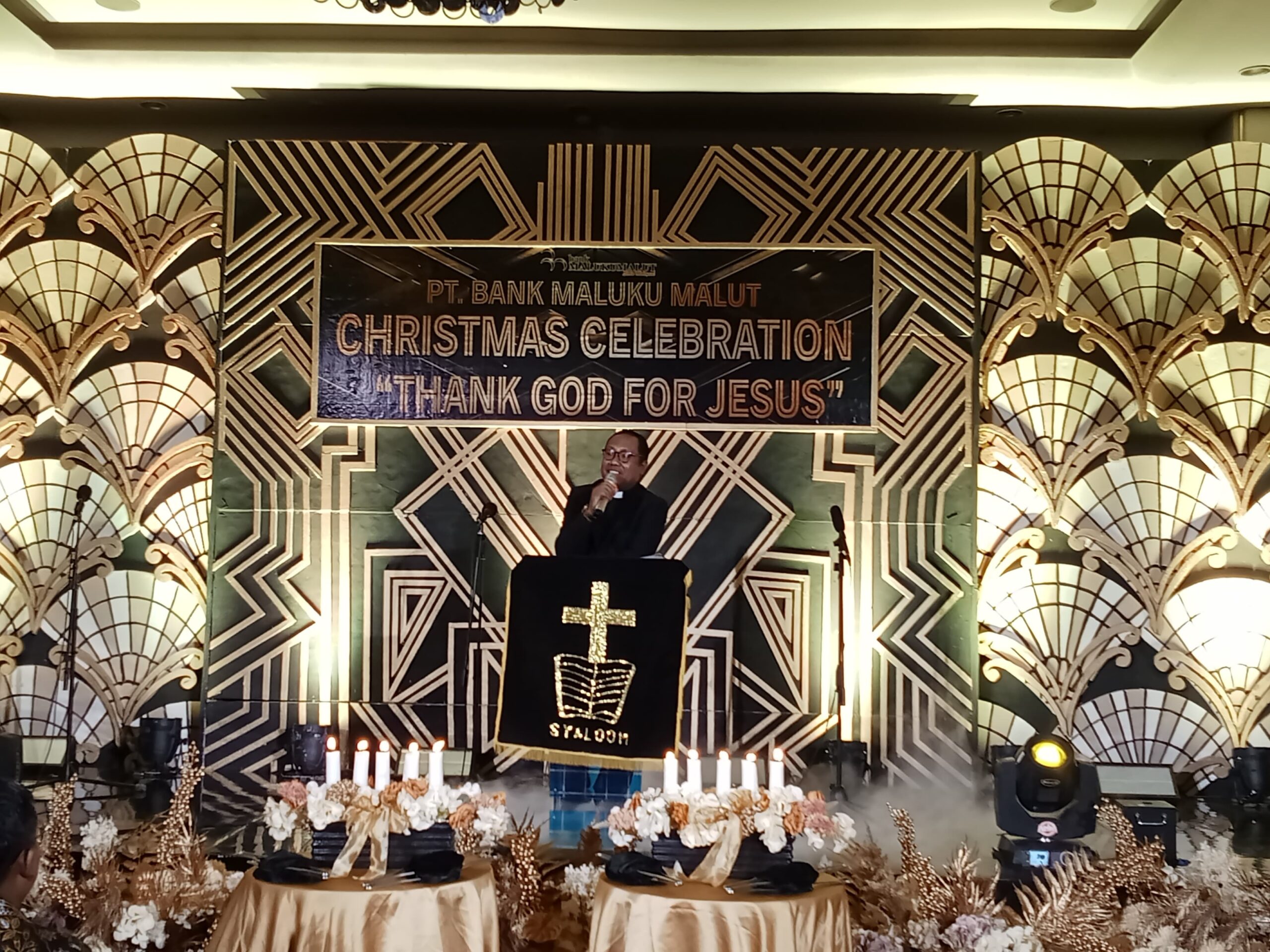 Ambon,Demokrasi Maluku ; Karyawan PT.Bank Maluku-Malut Kantor Pusat & Kantor Cabang Ambon merayakan natal Kristus 2025 , yang berlangsung di Hotel Swissbeel . Perayaan Natal tersebut selain dihadiri Komisaris, dewan direksi dan karyawan-karyawati juga dihadiri Gubernur Maluku Hendrik Lewerissa,SH.LLM & Walikota Ambon Drs Bodewin Wattimena, M.Si.