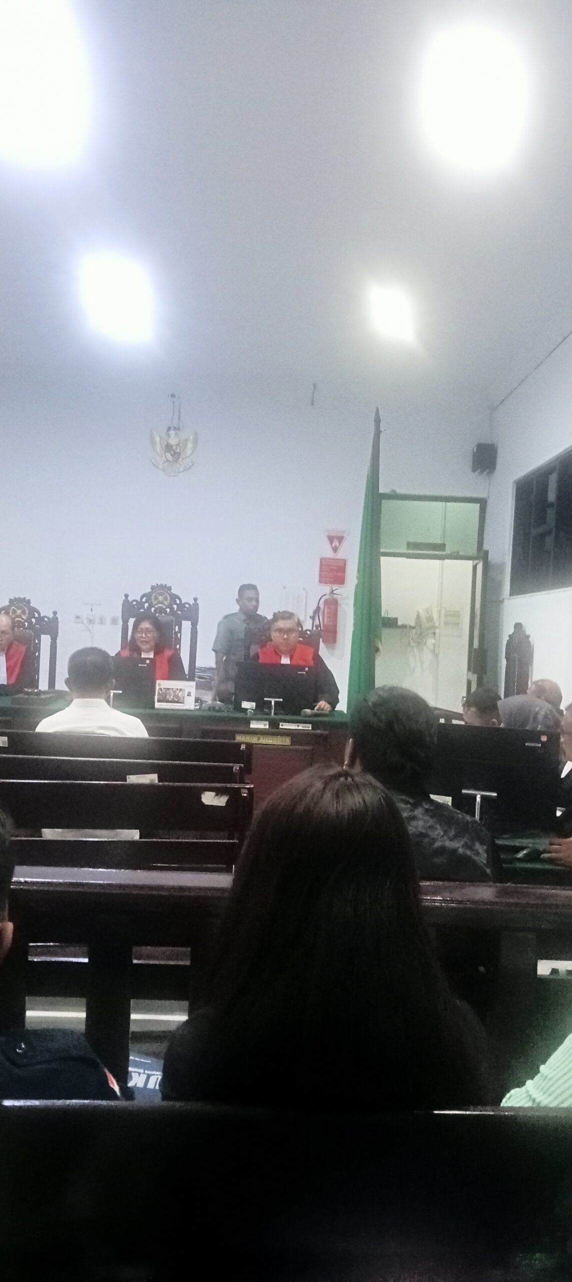 Sidang berlangsung Sejak sore hingga malam hari. Dipimpin oleh Martha Maitimu Sebagai Hakim Ketua dudampingi dua hakim kainnya. (*).